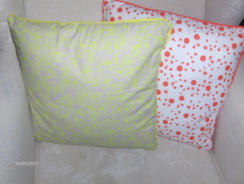 Min søde svigerdatter Tine ønskede sig nogle puder i lime og orange til deres nye sorte havesofa.
